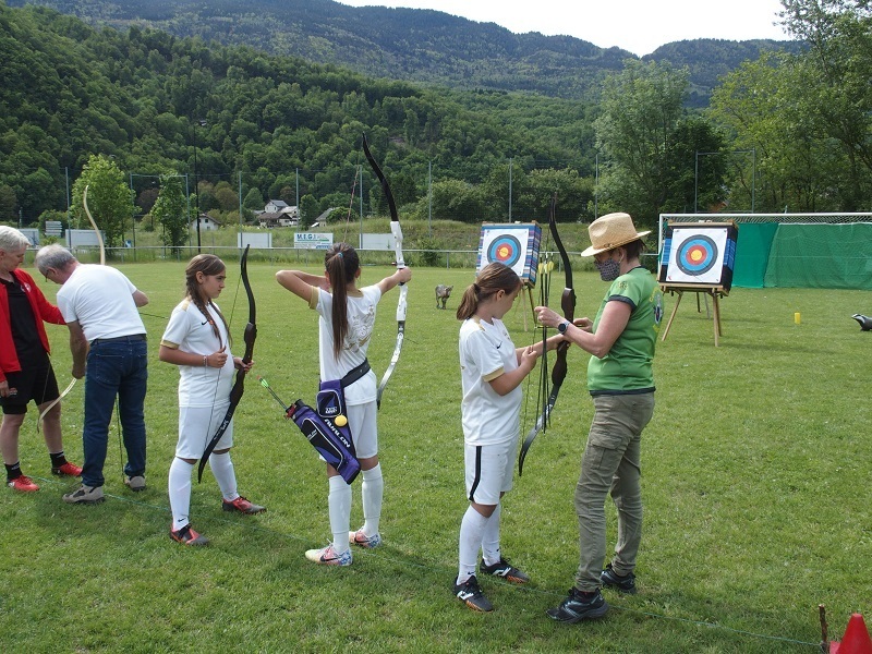Dans le cadre du stage de formation football de l'USC AIGUEBELLE qui s'est déroulé sur ce long weekend de la Pentecôte, la Compagnie de l'Arc d'Argentine est intervenue dimanche pour une après-midi d'initiation au tir à l'arc.