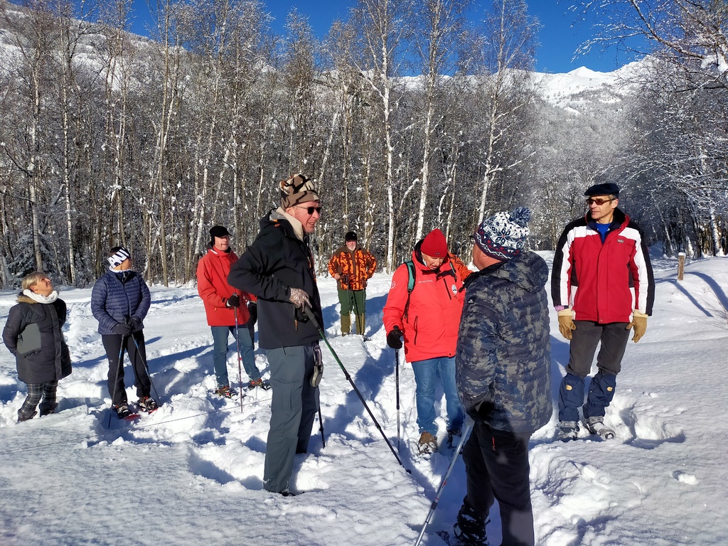 Dans la matinée qui a précédé la tenue de cette assemblée générale, une visite des sites retenus pour les différents parcours à été organisée par le club de Bourg St Maurice. Les abondantes chutes de neige des jours précédent ont rendu l'utilisation des raquettes à neige nécessaire.