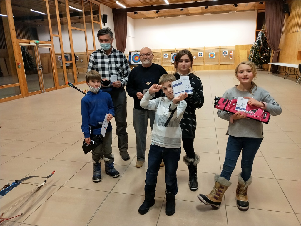 Mardi 14 décembre, le dernier entraînement de la saison a été l'occasion de remettre les plumes et flèches de progression à nos archers débutants.